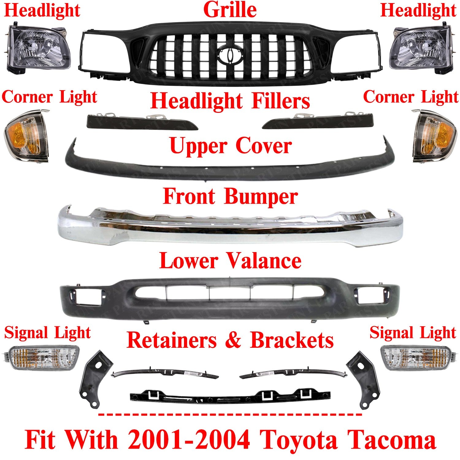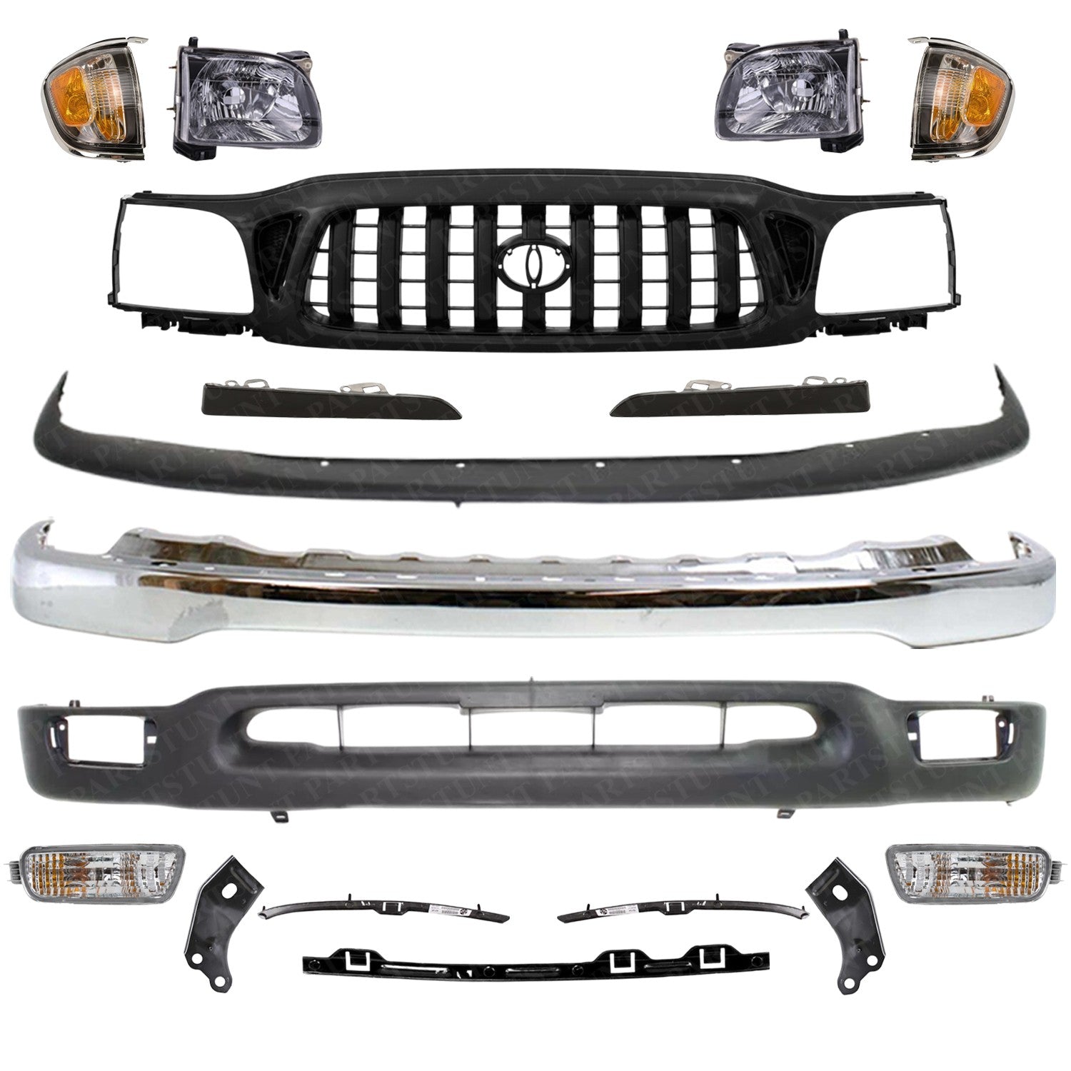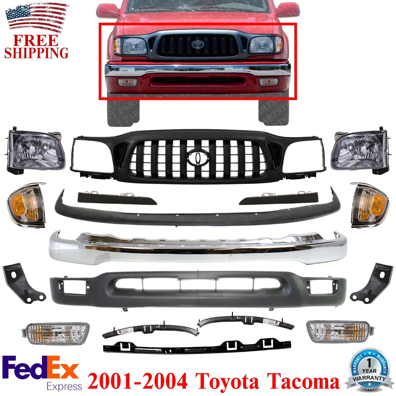 Front Bumper Chrome + Grille + Headlights Kit For 2001-2004 Toyota Tacoma 2WD Partslink Number: TO1002174...