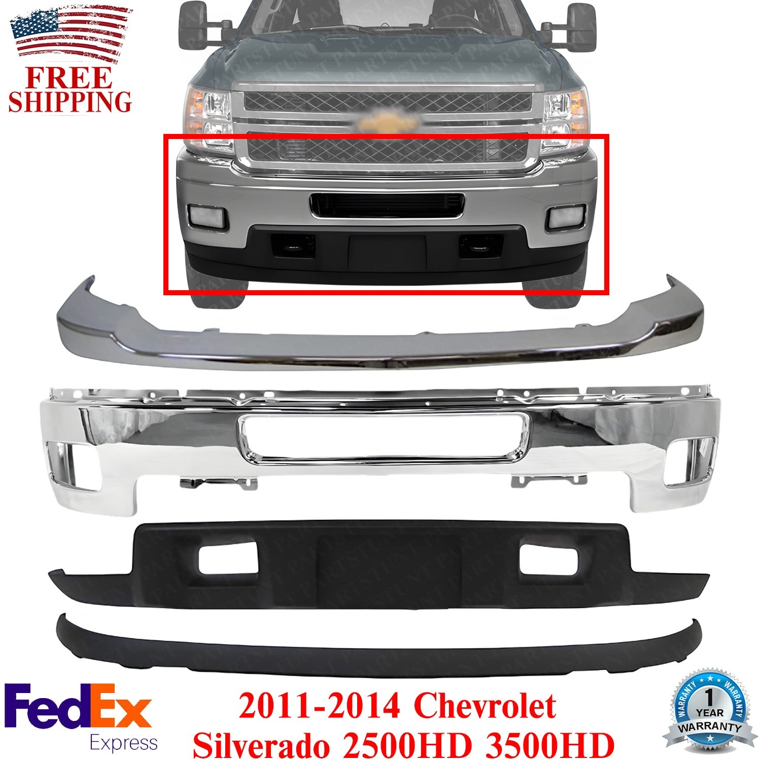 Front Bumper Chrome Kit For 2011-2014 Chevrolet Silverado 2500HD 3500HD Partlink Number: GM1002837 GM1014106 GM1095195 GM1092213 OEM...
