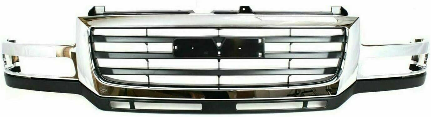 Front Bumper Chrome Kit + Grille + Lights for 2003-2006 GMC Sierra 2500HD 3500