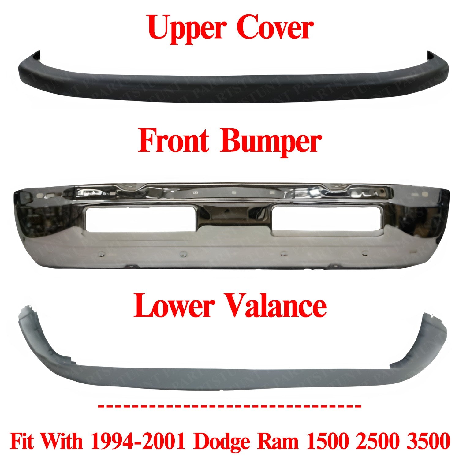 Front Bumper Chrome Steel Kit For 1994-2001 Dodge Ram 1500 2500 3500