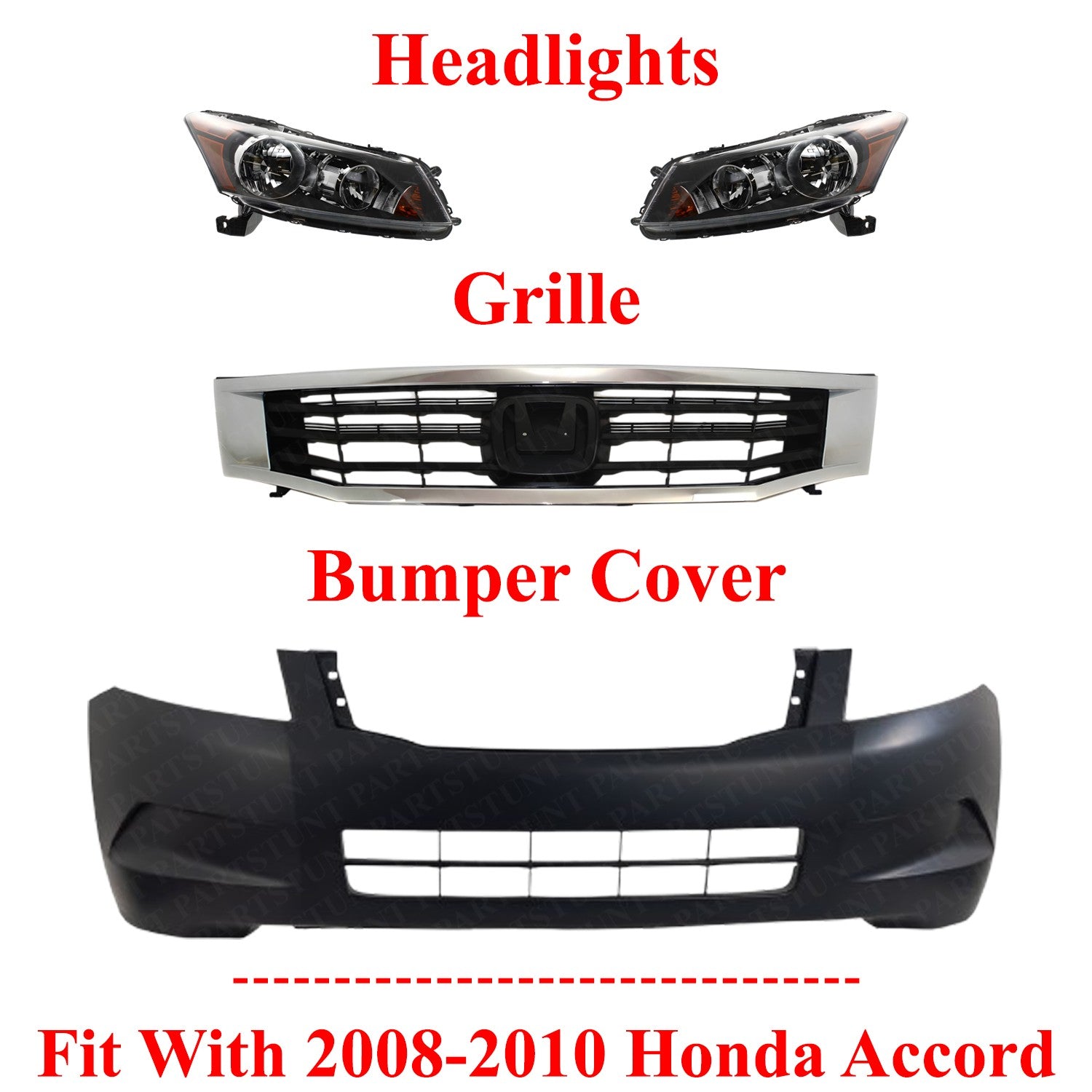 Front Bumper Cover Primed & Headlight Assembly Kit For 2008-2010 Honda Accord