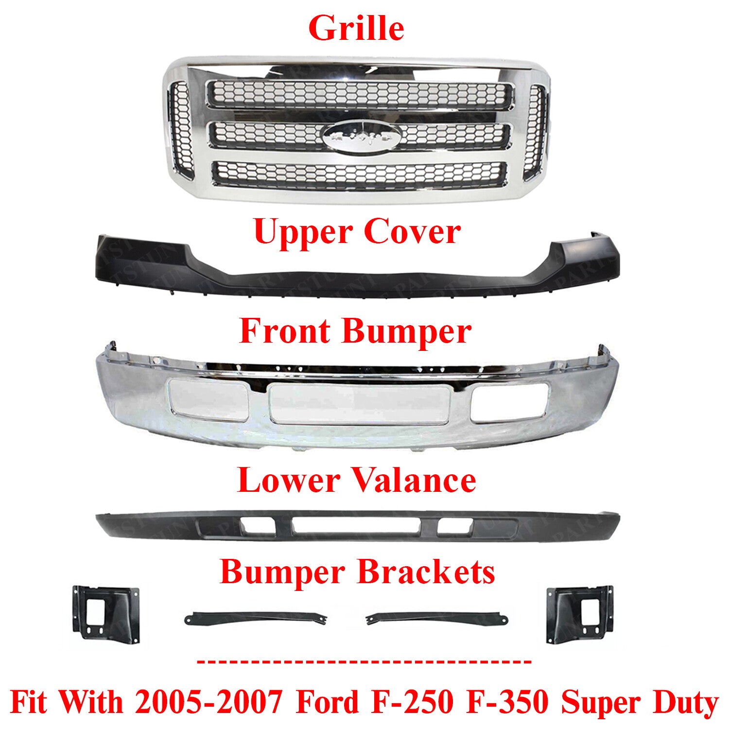 Front Bumper Kit + Grille + Brackets For 2005-2007 Ford F-250 F-350 Super Duty