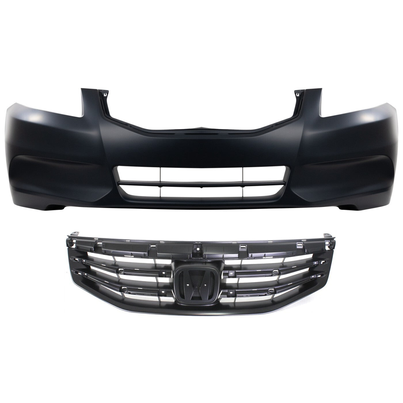 Front Bumper Primed + Grille Textured Black For 2011-2012 Honda Accord Sedan