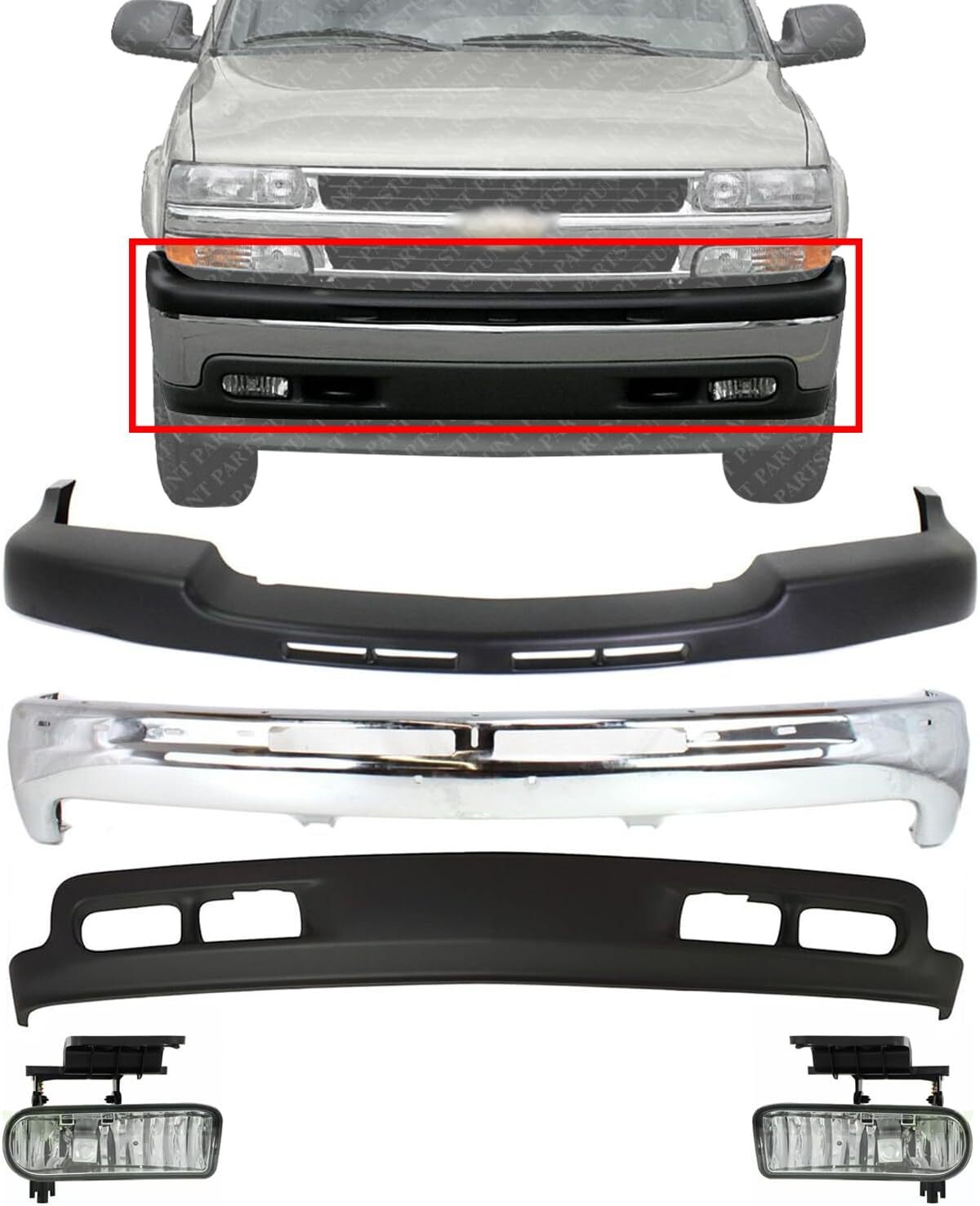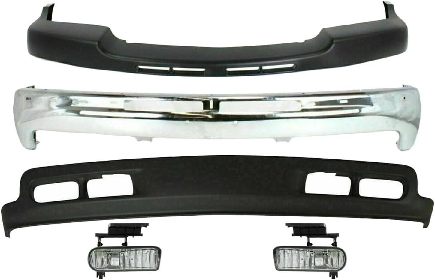 Front Bumper Chrome Steel + Upper Cover + lower Valance + Fog light Left Driver and Right Passenger Side For 2001-2002 Silverado 2500HD 3500HD