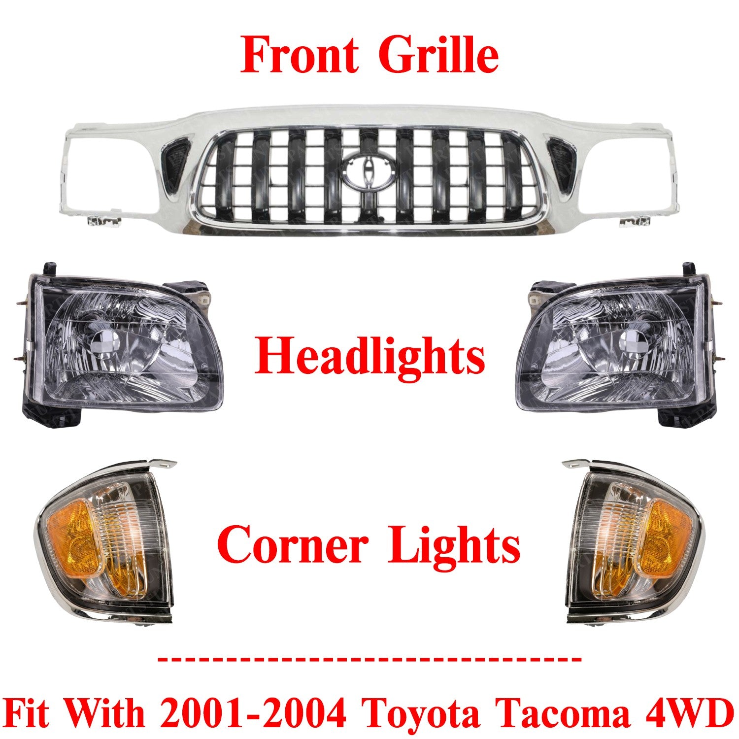 Front Chrome Grille & Headlights Kit For 2001-2004 Toyota Tacoma 4WD