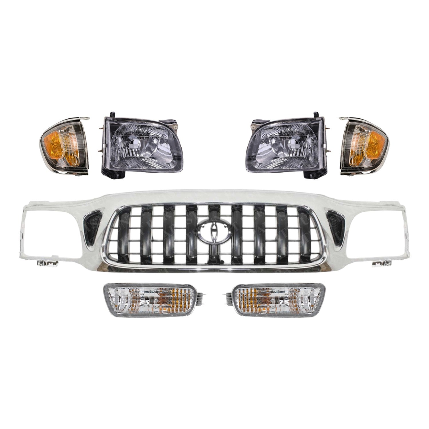 Front Chrome Grille + Headlights + Signal Lights For 2001-2004 Toyota Tacoma 4WD