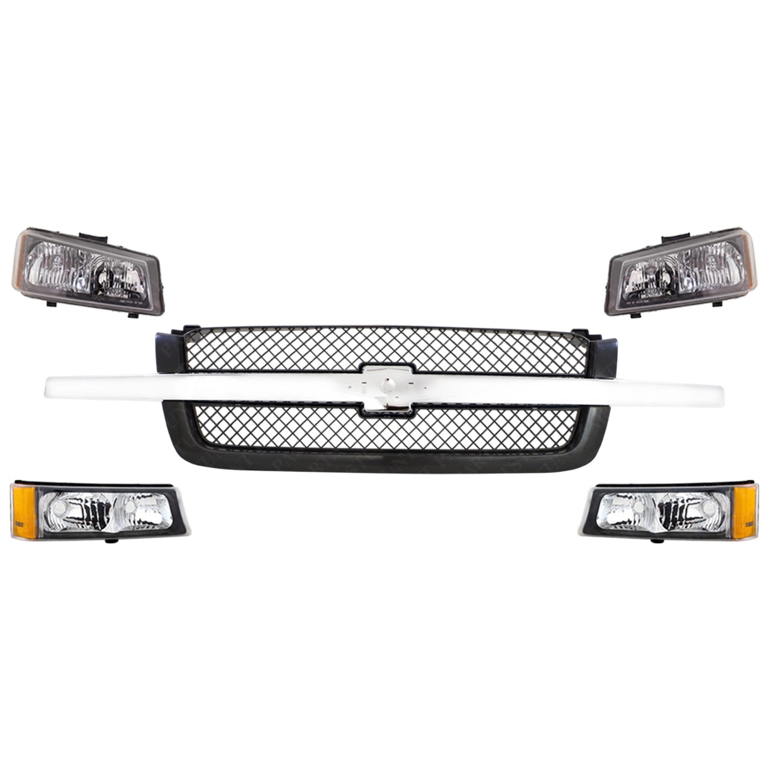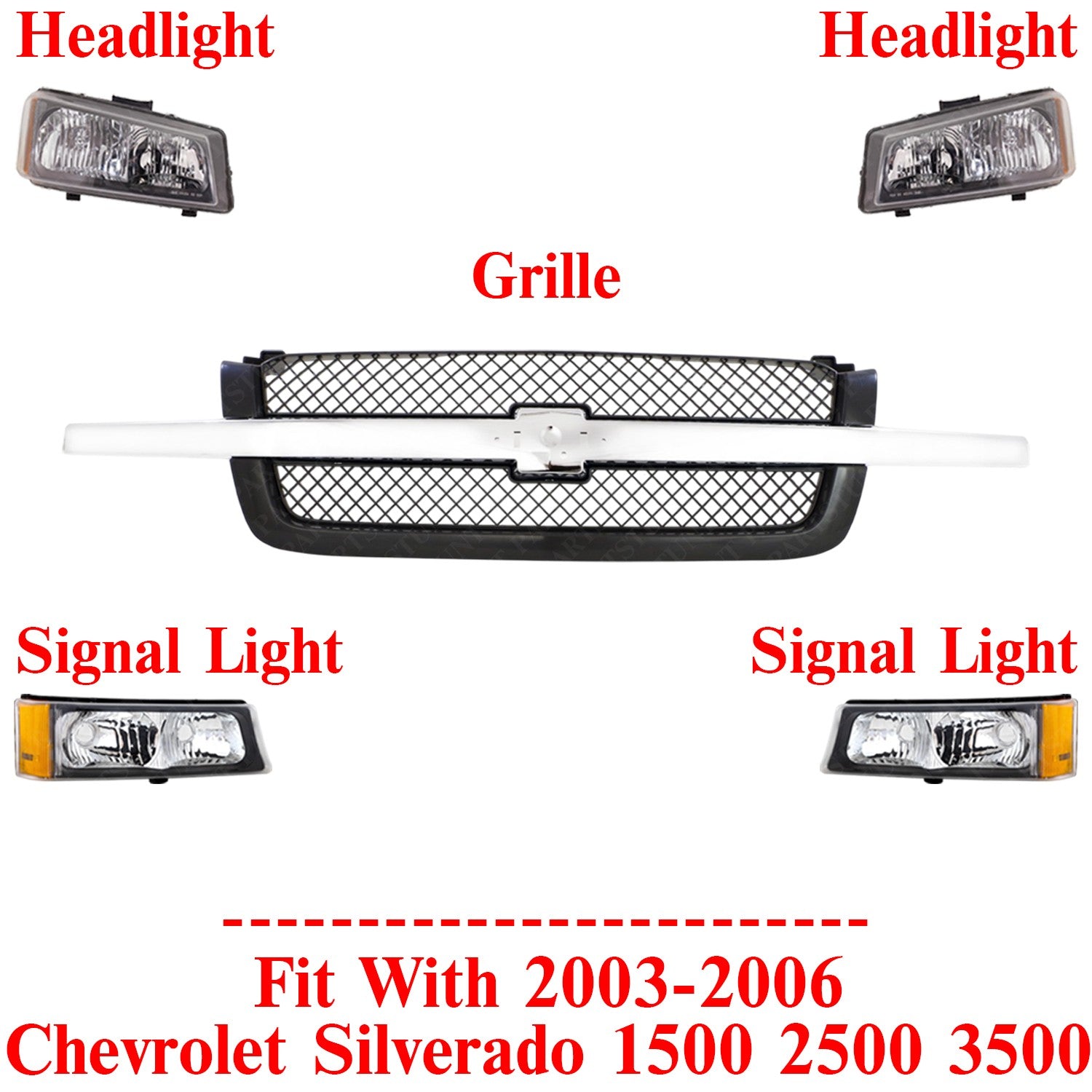 Front Grille + Headlight Kit For 2003-2006 Chevrolet Silverado 1500 2500HD 3500