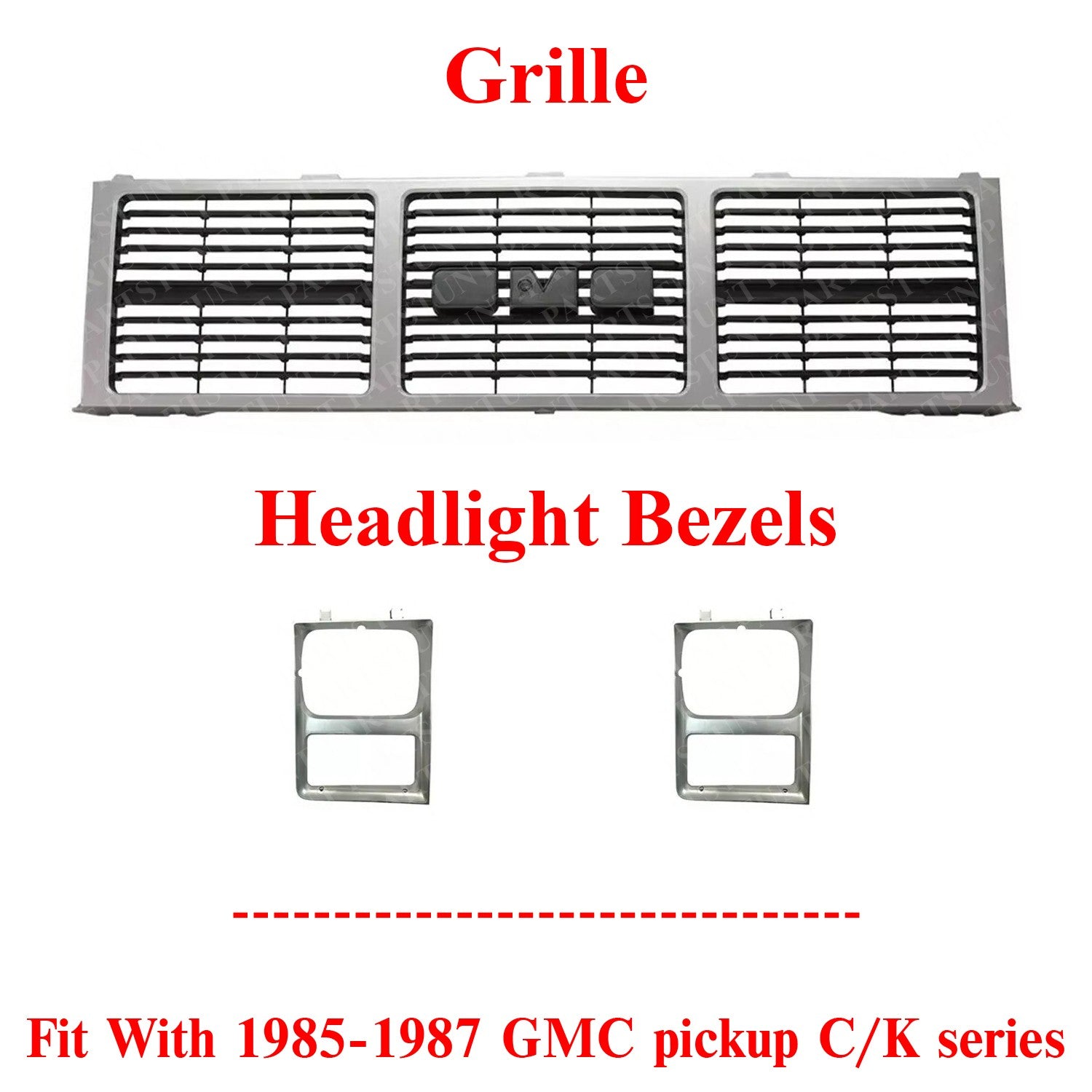Grille Silver + Headlight Bezels For 1985-1988 GMC C/K Series Pickup Suburban