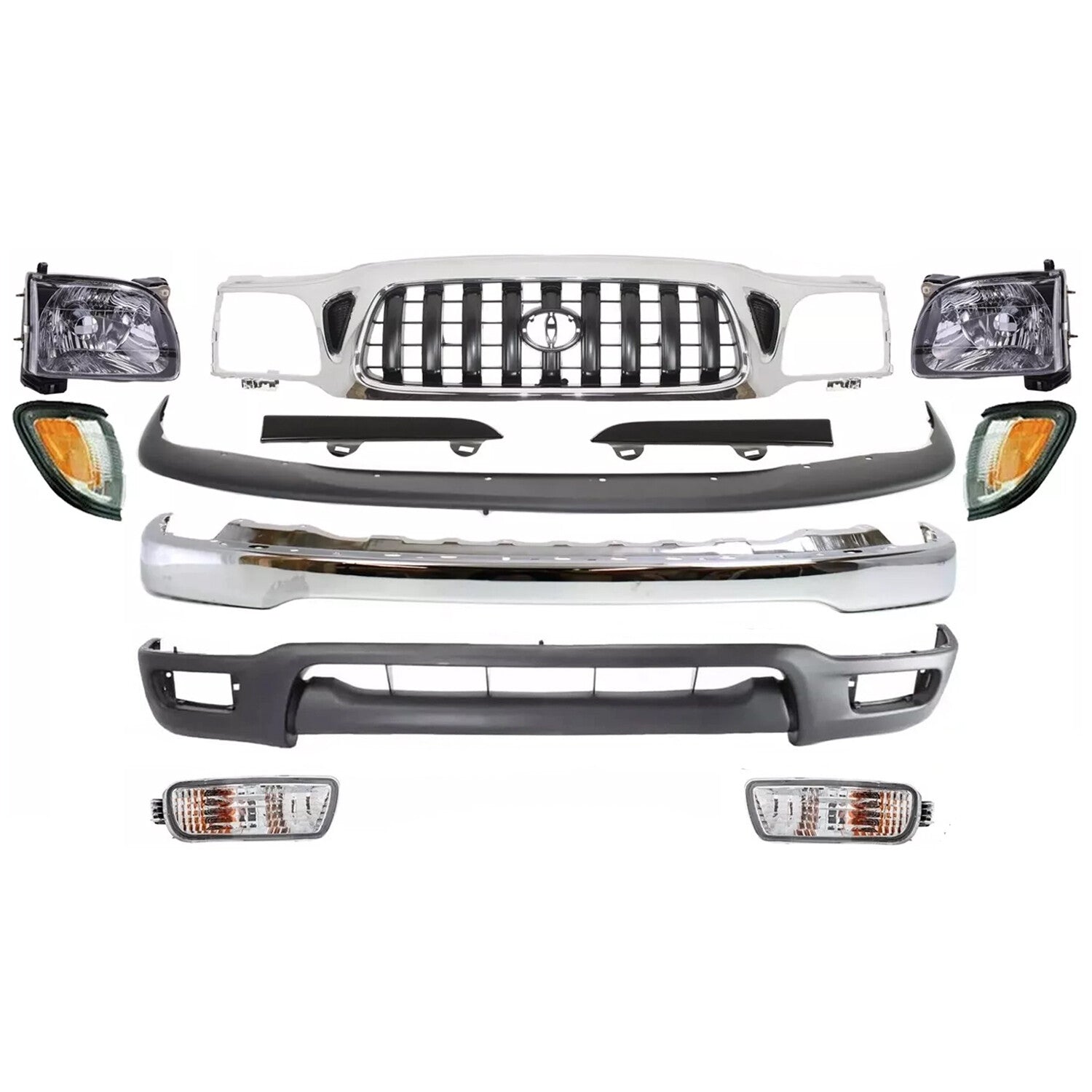 New Front Bumper Chrome & Grille Assembly Kit For 2001-2004 Toyota Tacoma